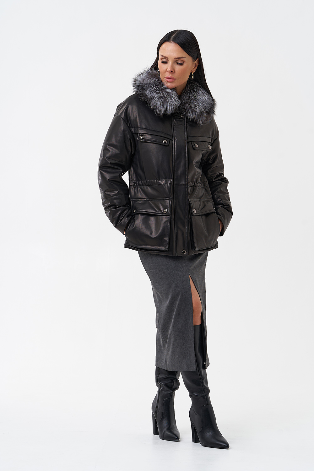 Тип ворота - отложной, отделка чернобурка