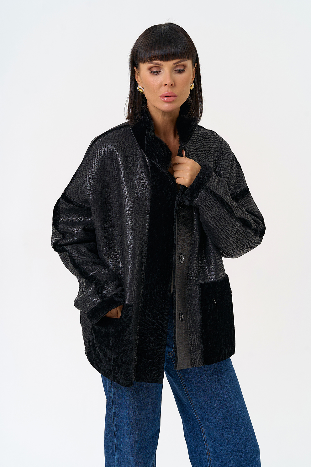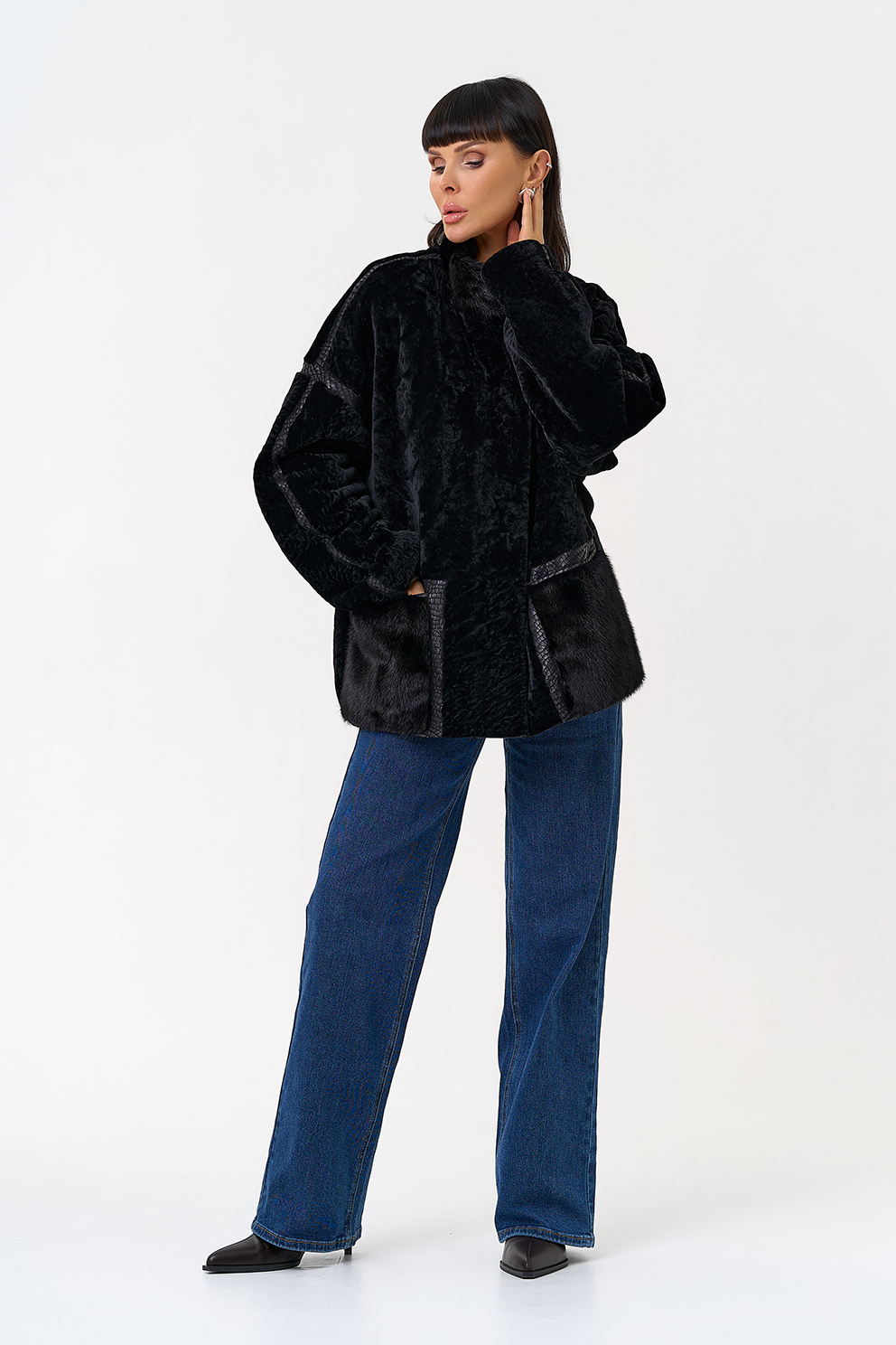 Фасон кармана - накладной, отделка норка